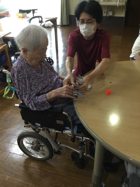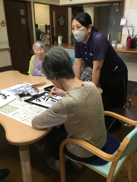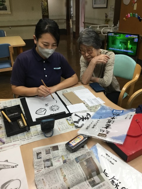 お月見 2025年9月30日/カテゴリ: グループホーム /作成者: isyr47jxもうすぐお月見 みなさんで作ってるものは何だったかのかな? 黒い動物? お月見団子の上に大きなお月さま その中にお餅をついてるウサギさん でした。 なんだか見てるだけで楽しくなるウサギさんですね。 お月見はいつだったのかな? 今日の習字はスタッフも参加 何を書いてるのかな? スタッフは秋の絵をかいていました。 紅葉に栗、さんま、かき 美味しそうなものばっかりです(笑) お出かけしない日は、お手伝いありがとうございます。 https://mnz.co.jp/wp/wp-content/uploads/2025/09/IMG_9862.jpg 640 480 isyr47jx https://mnz.co.jp/wp/wp-content/uploads/2017/10/mnz_logo.png isyr47jx2025-09-30 16:50:412025-09-30 16:50:41お月見