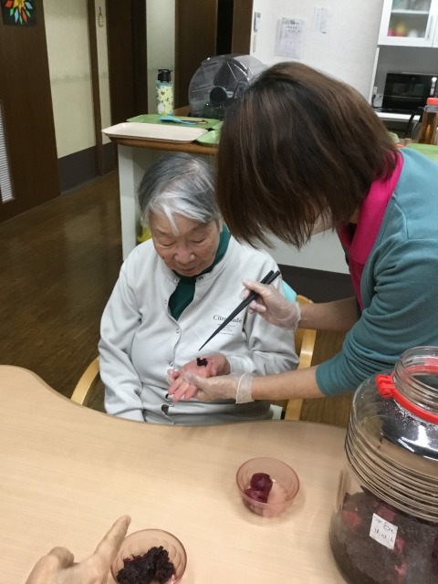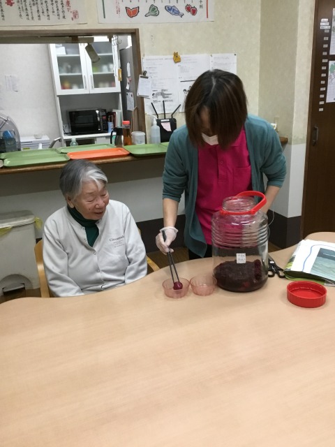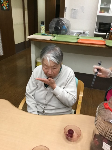 グループホームで作った梅干しが食べ頃。
