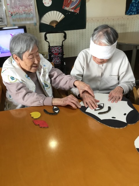 お正月の遊び 2026年1月13日/カテゴリ: グループホーム /作成者: isyr47jxお正月の楽しみ 福笑い!!! 目隠しをして、さてどんな顔になるのやら!!! 変な顔になっても、それもまた楽しい。 S様は自分の顔に大笑い 皆さん どんな顔が出来たのかな? 羽付きもしましたよ。 スタッフもやったことのない人がほとんど。 できるかな? 懐かしい遊びにO様もこの笑顔 福笑いも羽子板も 今やる方はほとんどいませんが なくなってしまうのも、寂しいものです。 若い方にも、伝えていきたいですね。 https://mnz.co.jp/wp/wp-content/uploads/2026/01/IMG_2243.jpg 480 640 isyr47jx https://mnz.co.jp/wp/wp-content/uploads/2017/10/mnz_logo.png isyr47jx2026-01-13 17:37:112026-01-13 17:37:11お正月の遊び