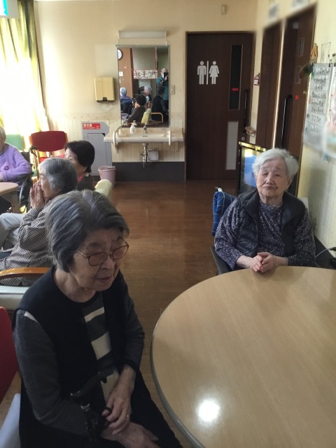 施設の玄関前でも日光浴