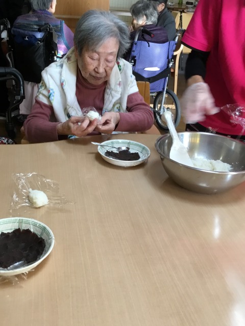 おやつ作りでおはぎを作りました。