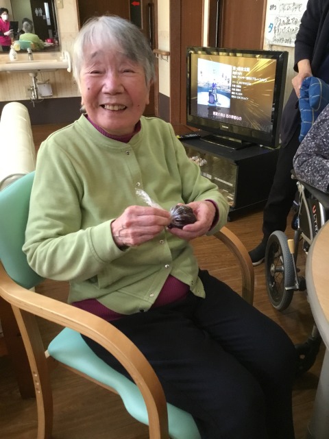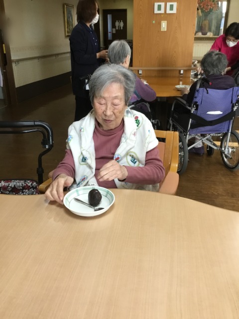 K様は皆さんの為にリンゴと柿をむいてくれました。